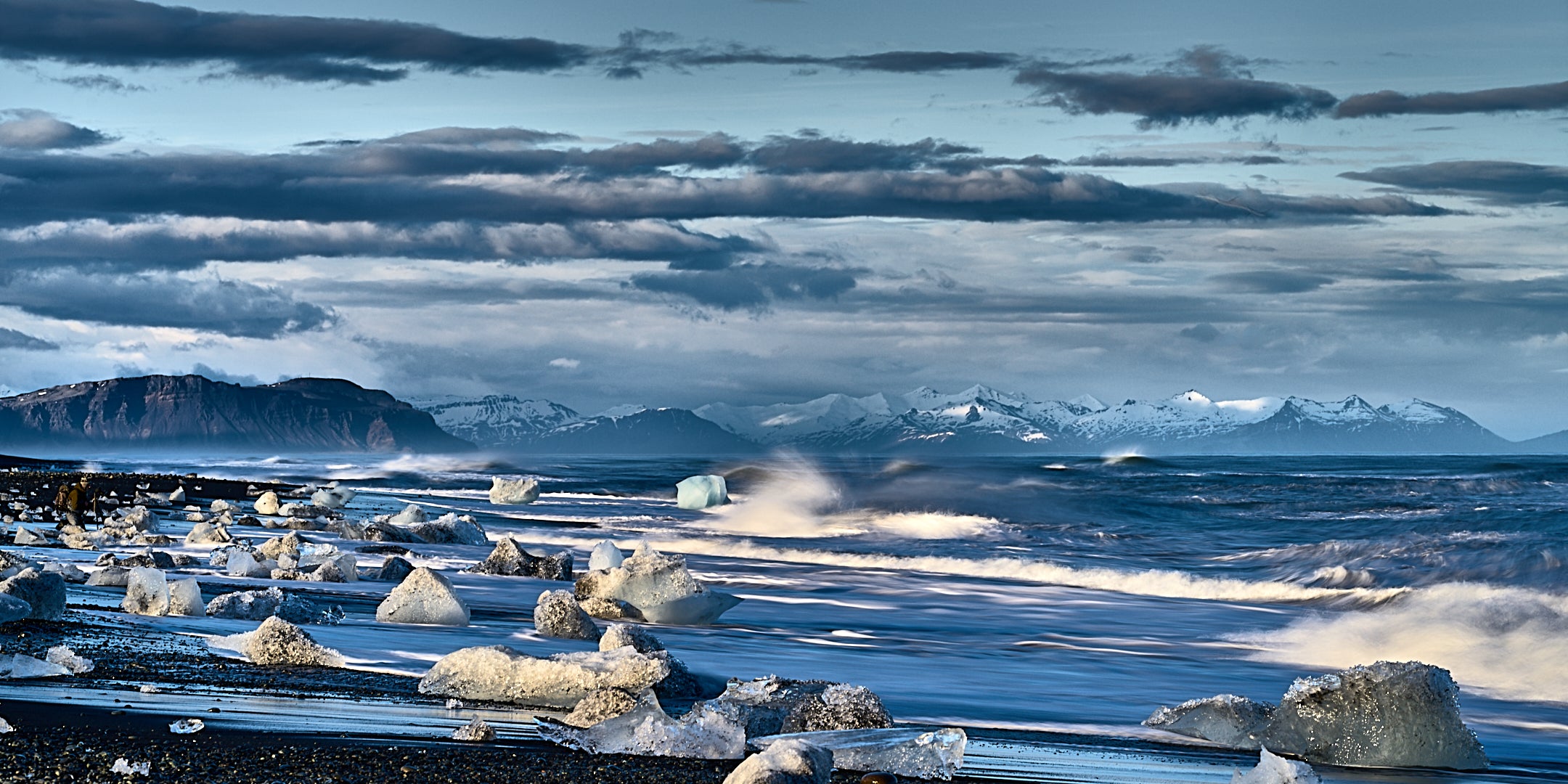 Iceland is a country that offers a variety of landscapes. The southern coast and highlands are covered in black sand, while white glaciers stand against the blue sky. Additionally, there are numerous geothermal areas that showcase a wide range of colors. Although there are no real forests, the country is still green. The ever-changing weather, such as a cold cloudy sky or gray fog, adds to the mesmerizing contrasts.