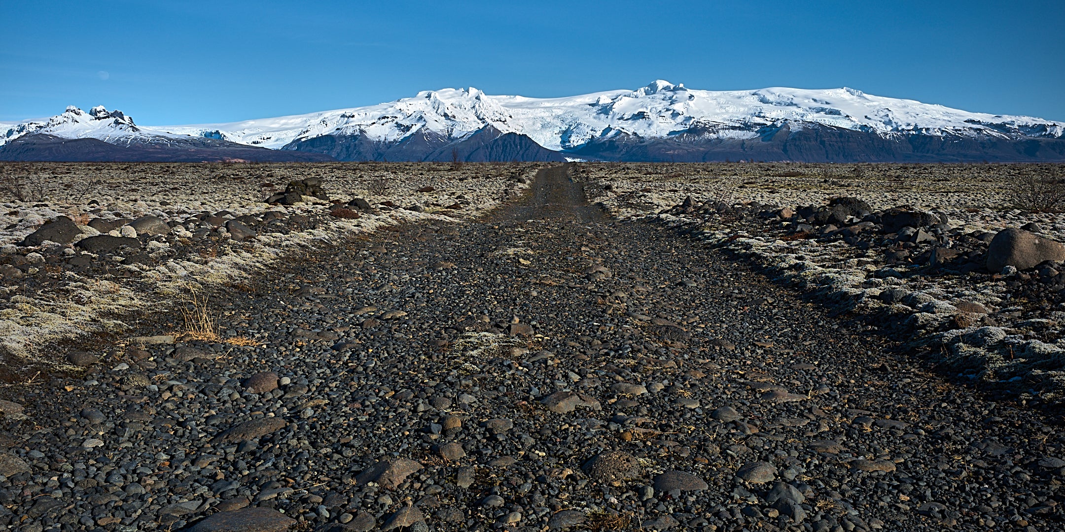 Skeiðarársandur, Europe’s largest sand plain at about 1300 square kilometers, was formed by glacial flows from Vatnajökull and is now largely overgrown. In the distance stands Öræfajökull, featuring Iceland's highest peak, Hvannadalshnjúkur (2010 m), right of center.