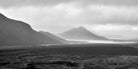 A blanket of fog covers the highlands, where sandy stretches are interspersed with spots of moss. The mist obscures the isolated fishing lakes and distant shadowy mountains, making them hard to spot.